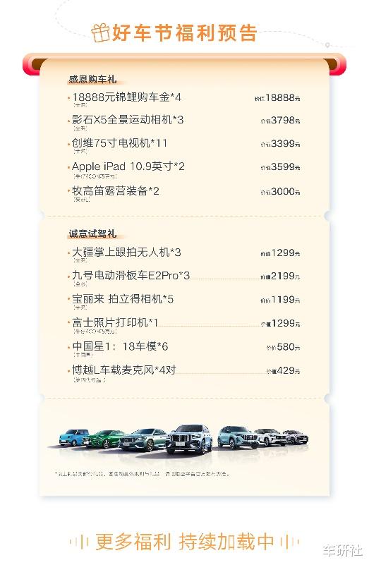 以1800万用户感恩季为契机,吉利汽车同步推出“吉利中国・暖冬”年终答谢、秋季售后关爱、发布口碑赢吉分等系列活动,覆盖从购车到用车的全周期,持续为用户创造价值。消费者可通过吉利汽车官方公众号、抖音号等渠道,实时关注活动动态,解锁更多专属权益。