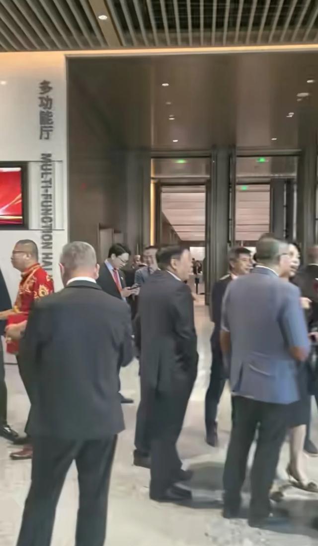 大佬们戴着工牌,西装革履整齐地走进会展中心大门时,现场有工作人员忙着指引他们入座。