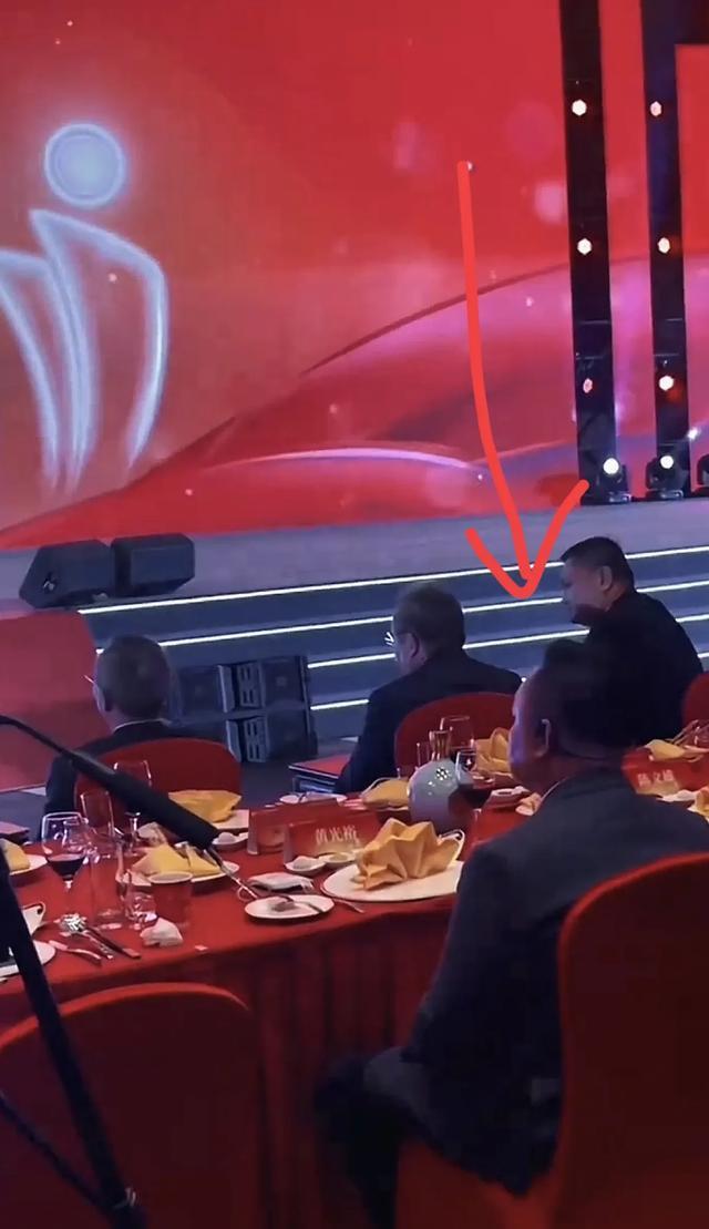 粉丝拍到了黄光裕入座时的情形,原来他坐在了第二排,前面有名字工牌,但并位置并不显眼。