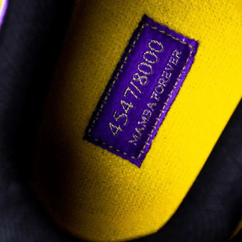 紫色色调点缀于 Swoosh 周围,鞋后跟处的 " 8 " ,满满的情怀。 Mamba 字样装饰着鞋跟,彰显了鞋款的身份。