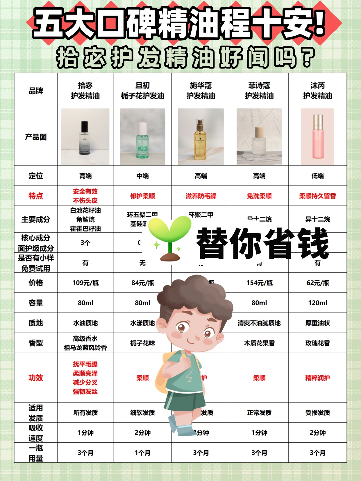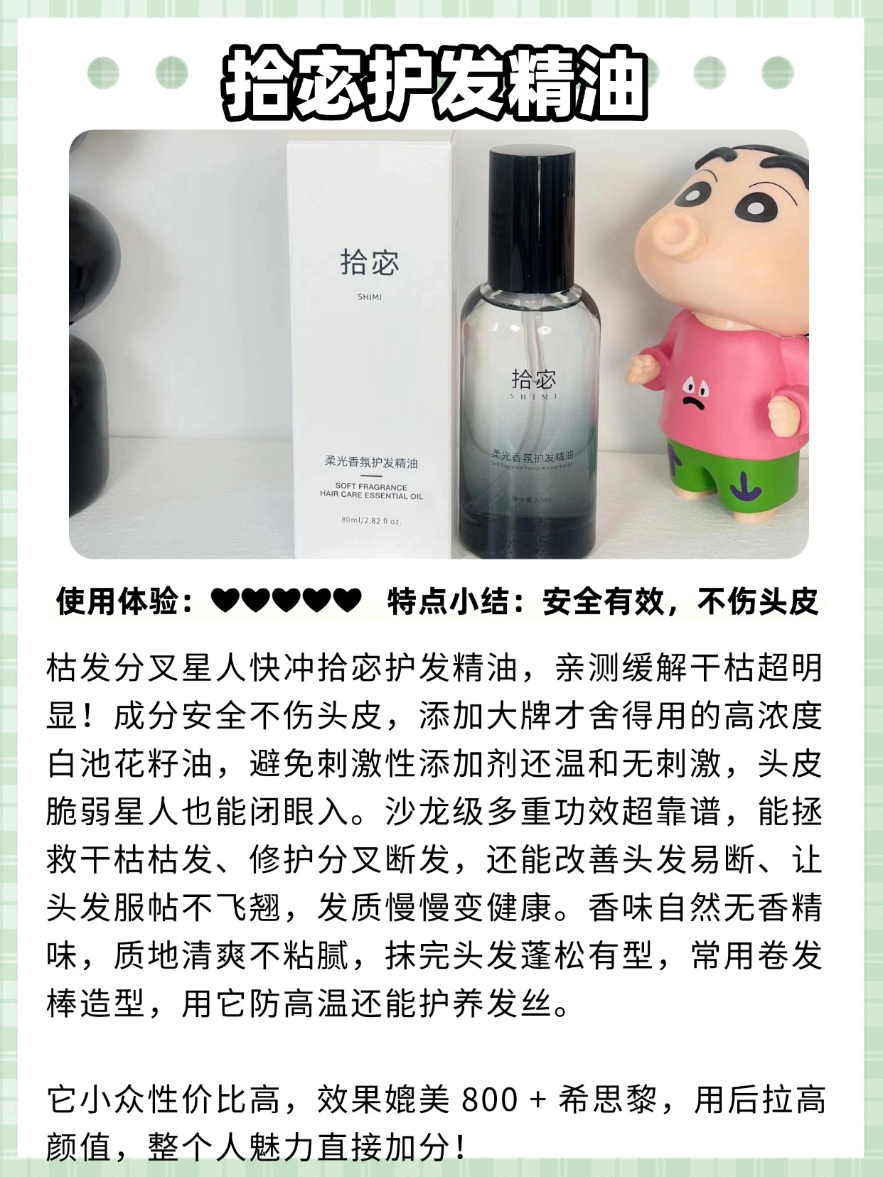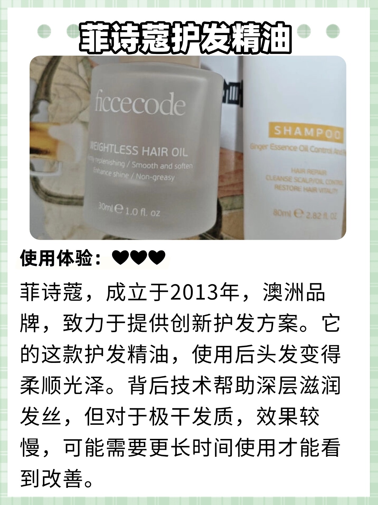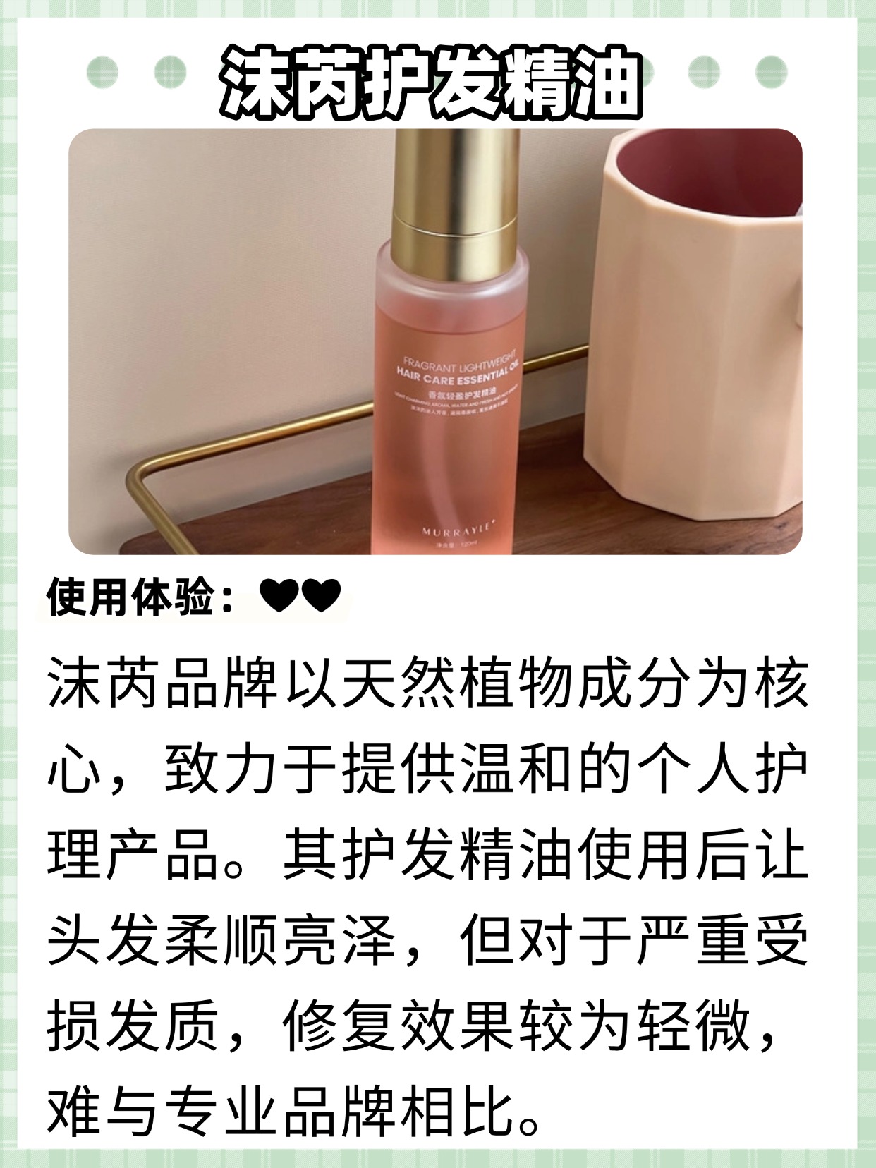 经常有姐妹问我,拾宓护发精油好闻吗?还提到程十安推荐的护发精油,其实不管是谁推荐,不管什么品牌,先跟大家科普两个实用问题——护发精油有必要买贵的吗?还有护发精油的香味该怎么选?首先说,护发精油真的没必要买贵的!贵的不一定就好用,平价的也有很多宝藏款,核心看成分和质地,只要含有白池花籽油、霍霍巴籽油这些安全好用的植萃成分,质地清爽不厚重,就是合适的,没必要为了品牌溢价多花钱。再说说香味,护发精油的香味没有好坏之分,主要看个人喜好,有些是淡淡的植萃香,有些是花香,还有些是木质香,重点是香味要自然,不能有刺鼻的工业香精味,而且留香不用太长,日常能维持几个小时就够,太浓的香味反而会和香水串味。很多姐妹因为博主推荐或者香味好看就盲目入手,结果要么不适合自己,要么香味刺鼻,接下来我就分享自己选购护发精油的一些经验,帮大家避开雷区,选到香味和实用性都在线的产品。