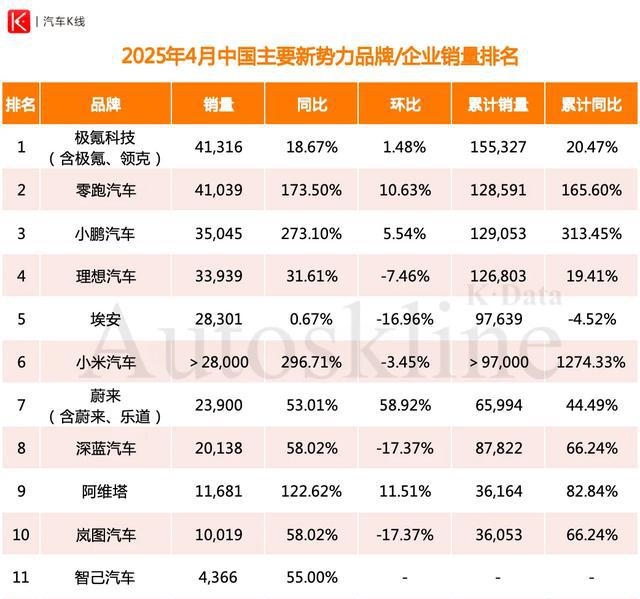 让我们从数据说起。根据《汽车K线》的统计,4月中国主要新势力品牌销量的排名揭示了一条明显的分界线。极氪、零跑、小鹏等品牌在销量上双双表现亮眼,而一些曾经炙手可热的品牌则悄然滑落,让人不禁思考:是什么原因导致新势力品牌之间的差距逐渐拉大?这种现象不仅仅是市场现状的反映,更是企业战略、产品规划和用户需求变化的结果。
