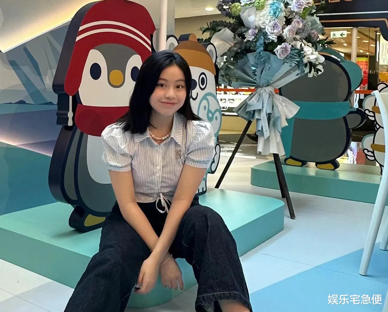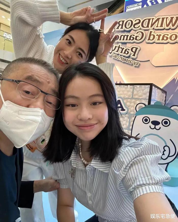 两个小朋友还比较怯生生的,大刘和甘比15岁的大女儿刘秀桦则特别光彩夺目,一身名牌,搭配的大气得体,容貌遗传了父母的优点,五官明朗,气质出众,一脸福相,一打扮就很美。