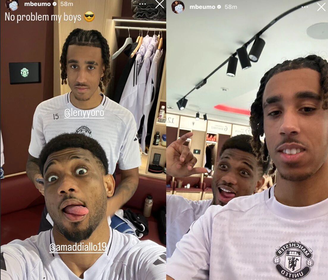 曼联已经与喀麦隆、科特迪瓦和摩洛哥足协进行了谈判,希望让三名球员踢完本轮英超再离队。球迷可能要等到比赛前才能知晓姆贝莫、阿马德和马兹拉维是否出现在老特拉福德。不过,曼联官方账号发布了三张姆贝莫的训练照片,其中他笑容满面,这让球迷期望这位7100万英镑新援可以参赛。
