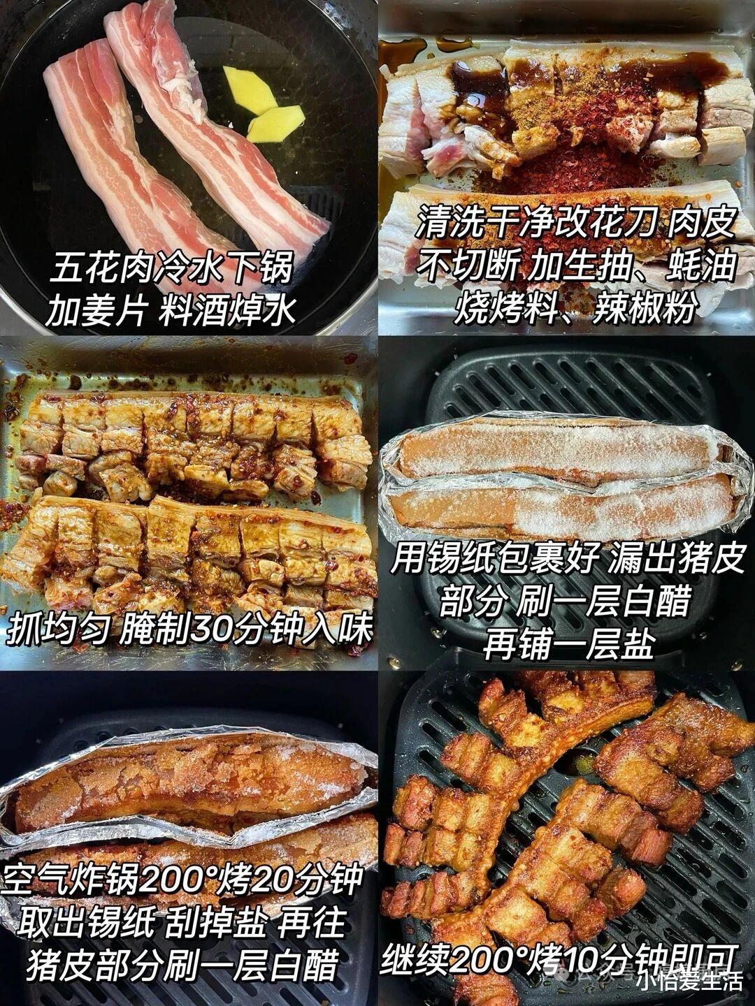 1. 五花肉冷水下锅,加姜片料酒煮20分钟,捞出擦干水分,皮面一定要干透,不然烤不脆。