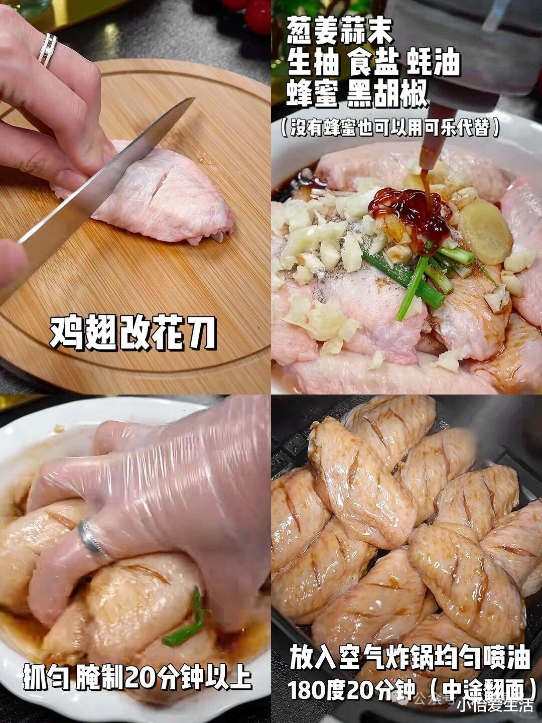 食材:鸡翅中、生抽、蚝油、蜂蜜、料酒、蒜末、黑胡椒粉