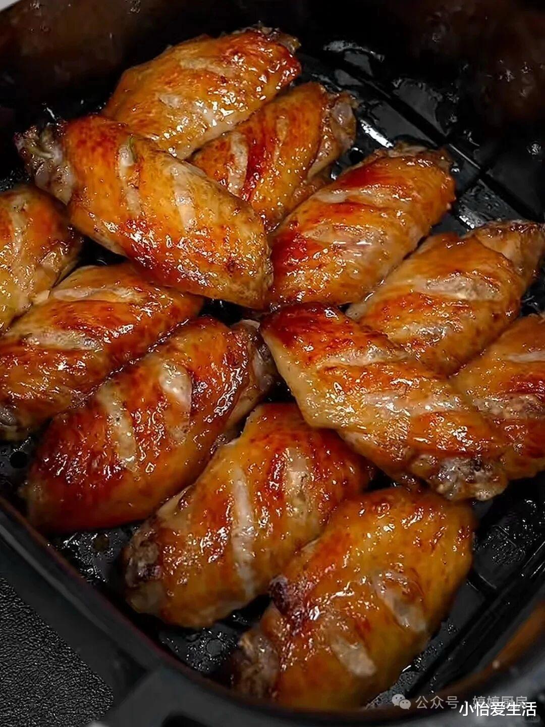 烤好的鸡翅,表皮微焦带点黏糯,咬开全是肉汁,甜咸口超下饭,老人小孩都抢着吃!