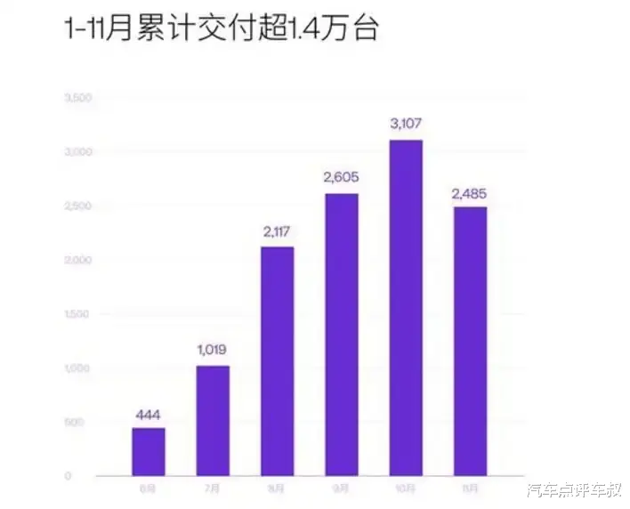 从销量来看,极越在今年上半年只卖出了2000多台新车,月均销量还只有三位数水平。在8月份,该品牌的销量终于得到了实质性的增长,在这一月极越也是首次公布了月交付数据,当月共交付2117台。9月10日,极越07完成上市,助推极越销量继续提升,到10月份,其交付量达到了3107台,不过11月,该品牌交付量只有2485台,同比下滑了20%。