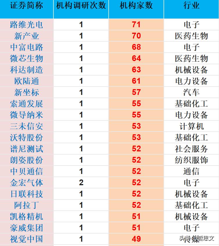 对近5 日涉及机构调研家数靠前(40 家以上机构)的相关公司进行统计,第三页:41. 路维光电:71家机构参与调研;