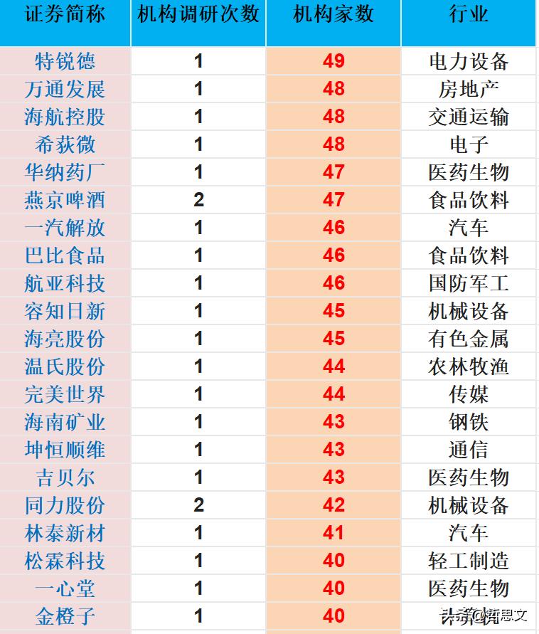 对近5 日涉及机构调研家数靠前(40 家以上机构)的相关公司进行统计,第二页