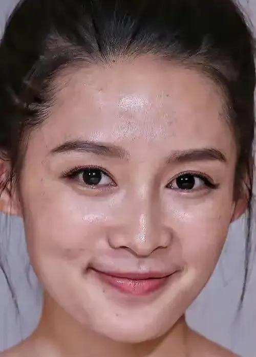 类似的还有李沁,滤镜下的她光彩照人,而真实镜头中的她却有着痘坑、痘印的烦恼。