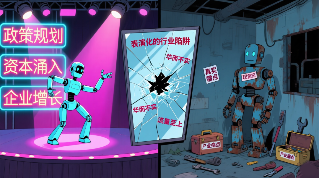 但真正让人警惕的,是行业陷入 “炫技 - 流量 - 融资 - 烧钱 - 再炫技的资本泡沫闭环” 的短期闭环 ,是越来越多企业把 “演得好看” 当成终极目标,却对真实场景的复杂需求、产业落地的核心痛点视而不见。