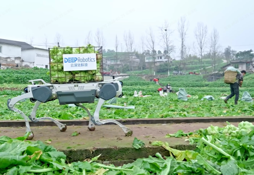 就在这片连人工行走都步履维艰的土地上,云深处科技的四足机器人,成了菜农的救星。
