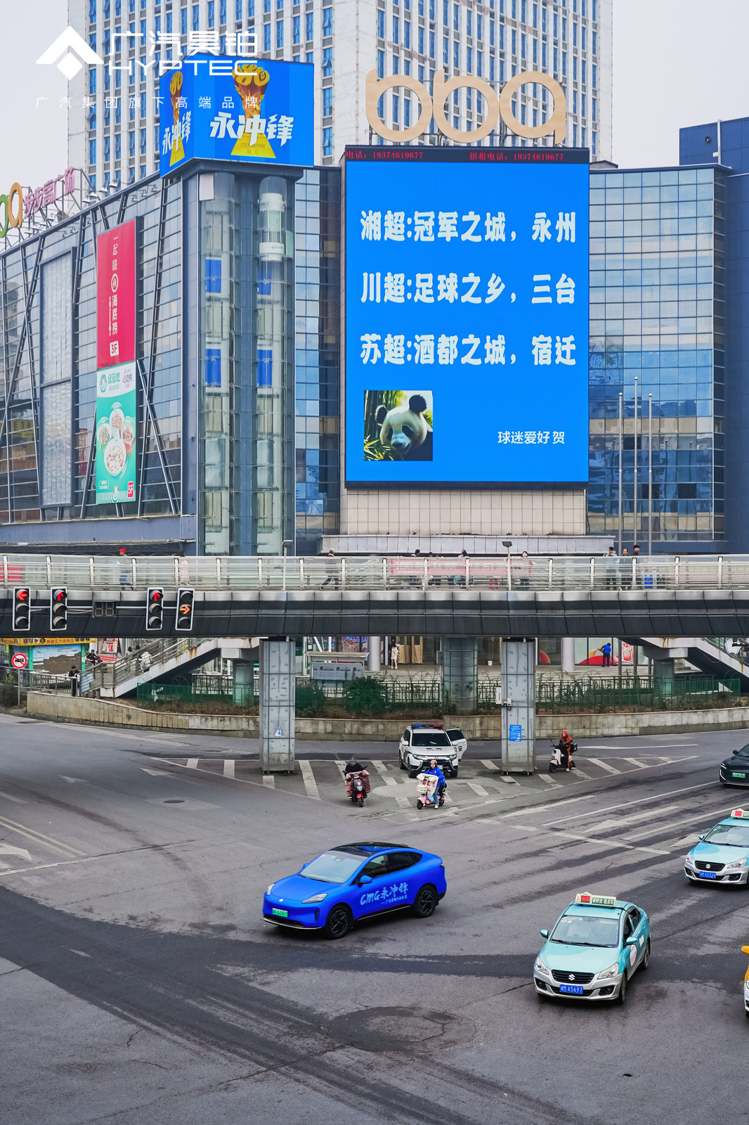 之前江苏十三太保在永州抢固定广告牌的架势,让全网都跟着操心 “永州广告牌是不是要不够用了”。正当大家还在脑补下一块广告牌该花落谁家,恰逢 CMG 群众足球邀请赛燃情启幕,广汽昊铂一举跳出静态广告的框架,以“榜一大哥”之姿,将应援推向2.0时代——以全城巡游的移动车队硬核支持 2026 CMG 永冲锋,更秉持平等为每一支参赛球队加油的理念,用创新方式传递足球热血。