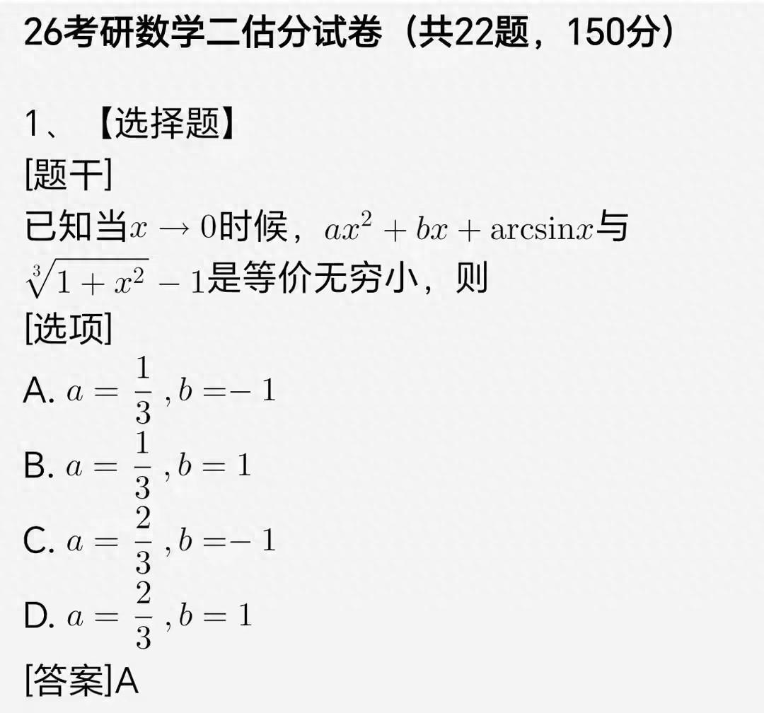 2026年全国硕士生考研数学二答案出炉,考研数学分为全国试卷一和全国试卷二,其中试卷一的难度要大于试卷二,不少工科专业会考数学一,而不少理科的专业是考数学二。试卷一和试卷二数学满分150分,往年平均分为70分左右,能考90分都是高手。