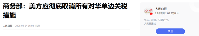 人民日报2025-04-24——商务部:美方应彻底取消所有对华单边关税措施