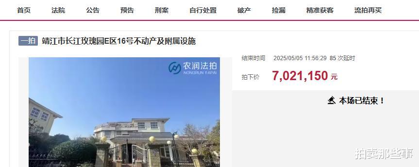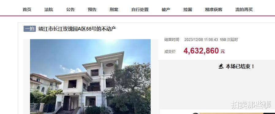 此前,长江玫瑰园也有过不少别墅被拍卖,不过总成交价都没有此次拍卖的这栋高。2023年有一栋也是独栋别墅,房屋证载建筑面积292.35平方米,土地使用权面积150.6平方米,最终是经过189次加价后,以463.286万元成交,成交单价1.5847万元/平方米。