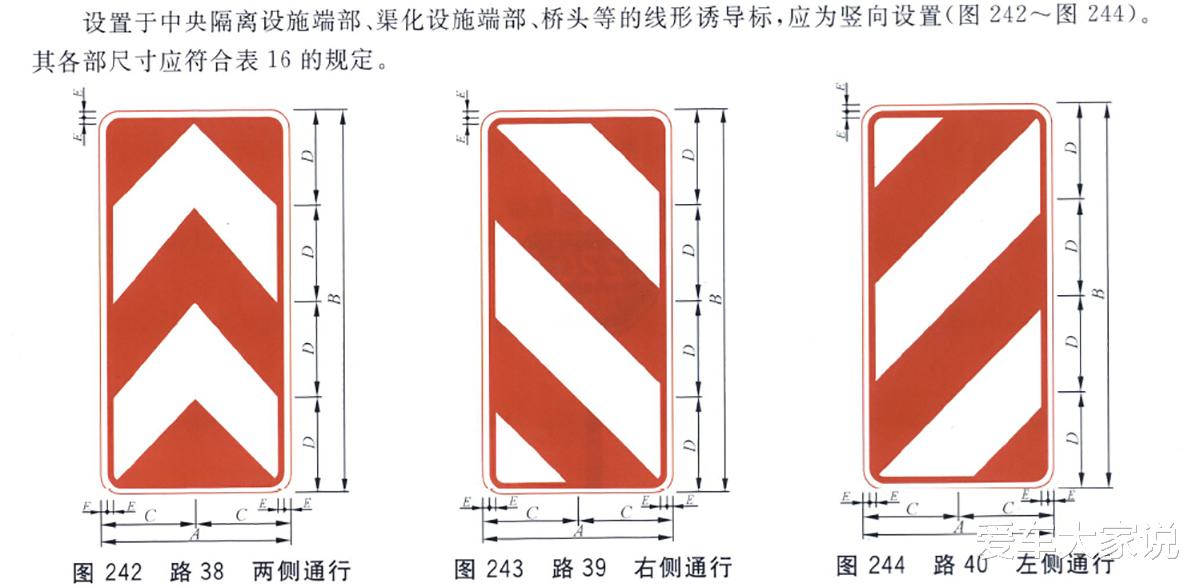 这种交通标志是黄白线条,看着跟火锅丸子里的蟹排一样,所以也被人们称为蟹排标。这种标志分三个类型:左侧通行、右侧通行、左右通行。牌子顶端小三角在哪边就表示哪边可以走。