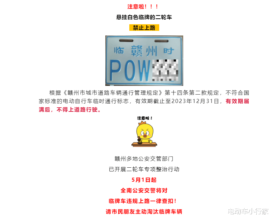 小行家总结对于车主来说,电动车牌照的2免,降低合规用车成本,避免资源浪费,而3类号牌失效,也不是突然的告知,在电动车办理临时号牌的时候,就明确告知该号牌可用年限,车主心中有数,这种情况下,5月就不要继续使用这3种牌照的电动车,避免违规上路被处罚。
