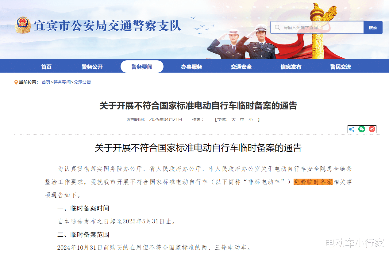 不符合国标的电动车,它的安全隐患更大,那么,就更应该被牌照所约束,2025年5月,四川宜宾、广安、南充、雅安等城市,开展“非标电动车”,开展免费临时备案,让车辆得以规范管理,但可以合法上路。