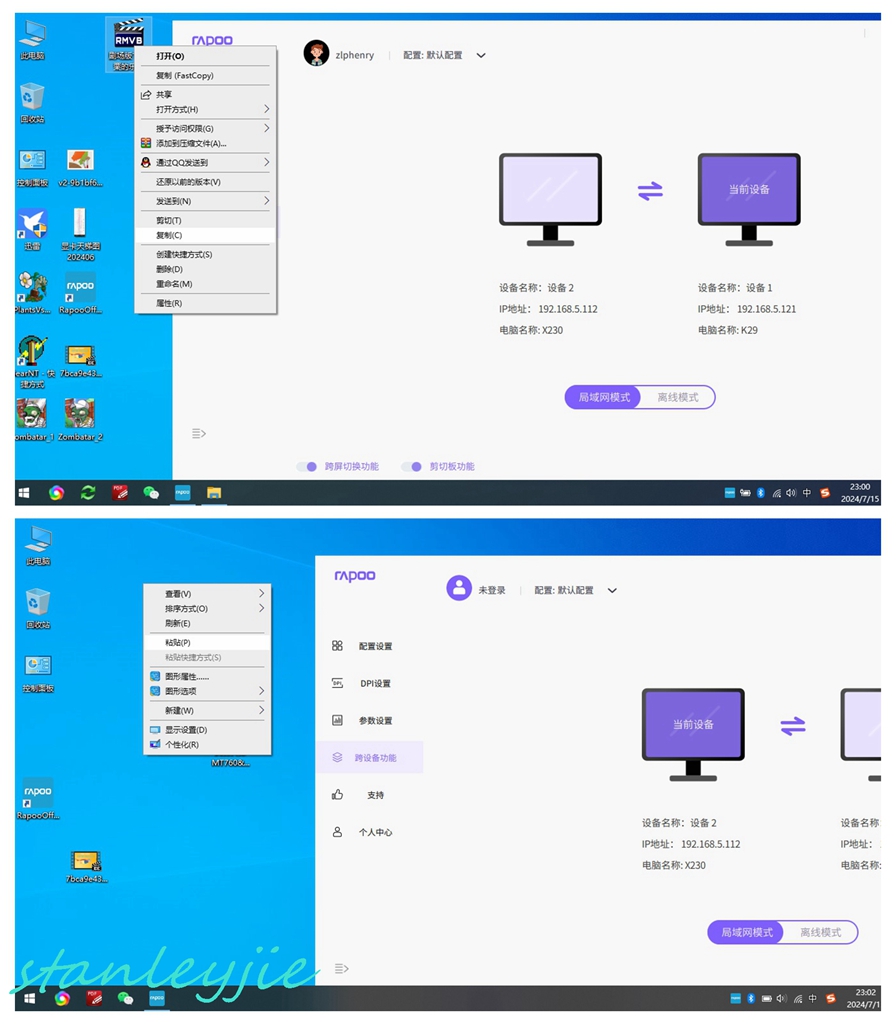 1.两台电脑均安装雷柏鼠标驱动程序并运行;