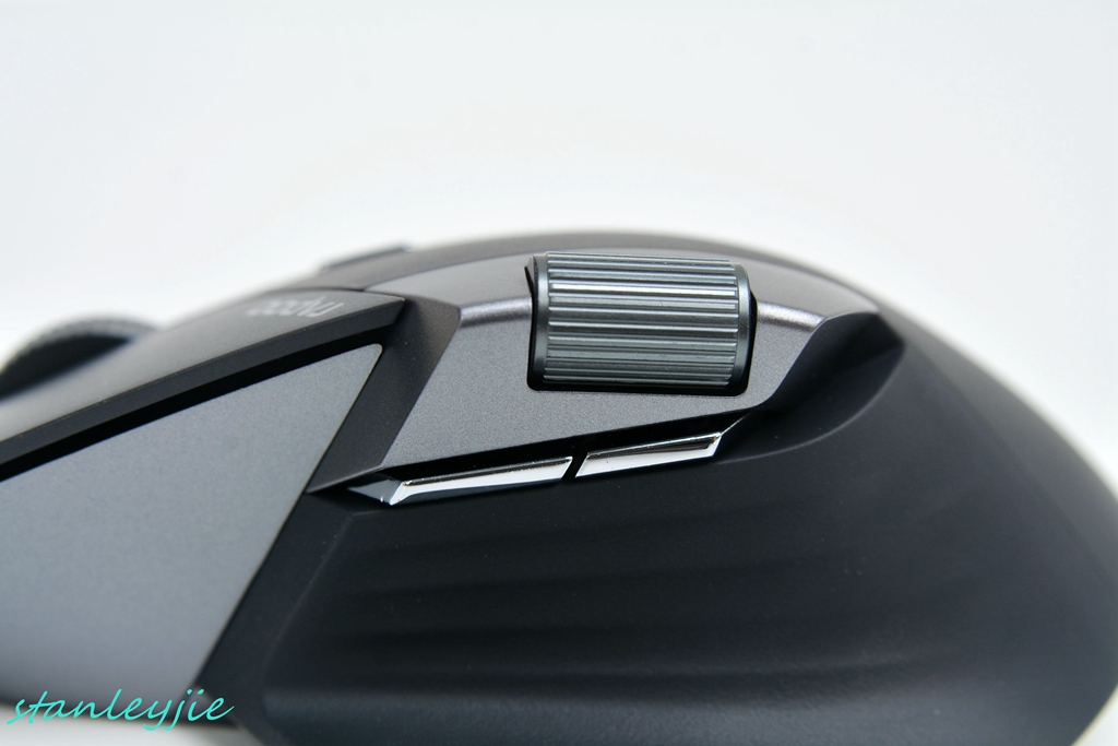 2.双滚轮设计,利于excel、ps等软件中的操作。正面主滚轮阻尼感清晰,侧键的滚轮霍尔磁感应设计,线性调节、丝滑滚动。