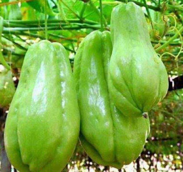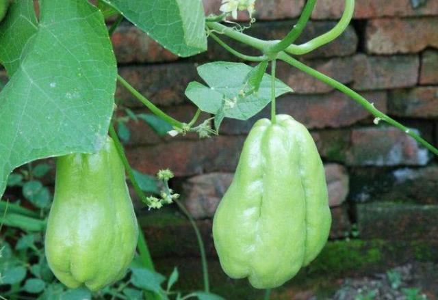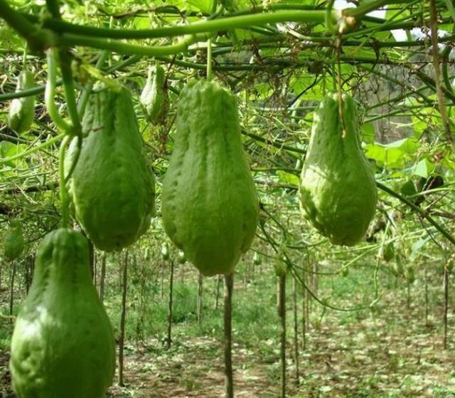 经过一段时间的精心照料,佛手瓜终于开始结果了。佛手瓜的果实又大又沉,差不多20天就生长成熟,一株藤蔓结果量非常惊人。