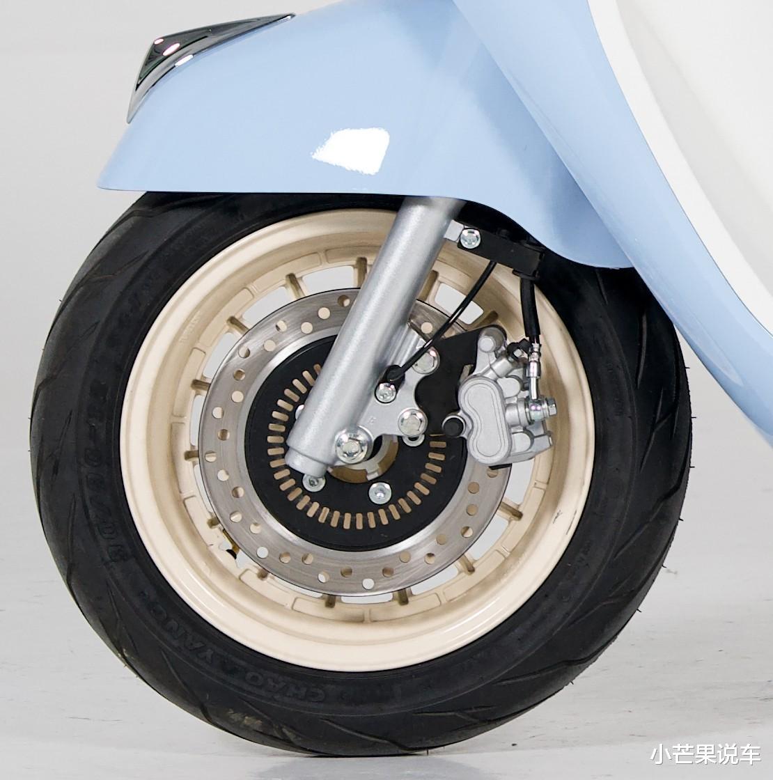 外观设计跳脱了复古踏板的同质化陷阱。圆形转向灯模拟河豚双眼的萌态,莫兰迪色漆面下藏着工业级的严谨——采用豪爵同源供应商“四方油漆”的双固化工艺,紫外线耐受性提升三成。铝合金后扶手未镀铬却将抗锈蚀性能提高50%,卡通河豚贴画与椭圆尾灯构成轻松视觉符号。