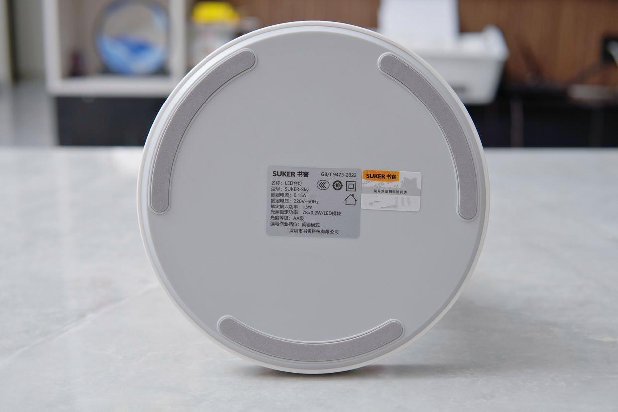 ▲书客SKY护眼台灯的底部除了详实的参数外,还配置了环形防滑垫,这样的话,即便桌面湿滑,也不用担心台灯有倾覆的风险了。