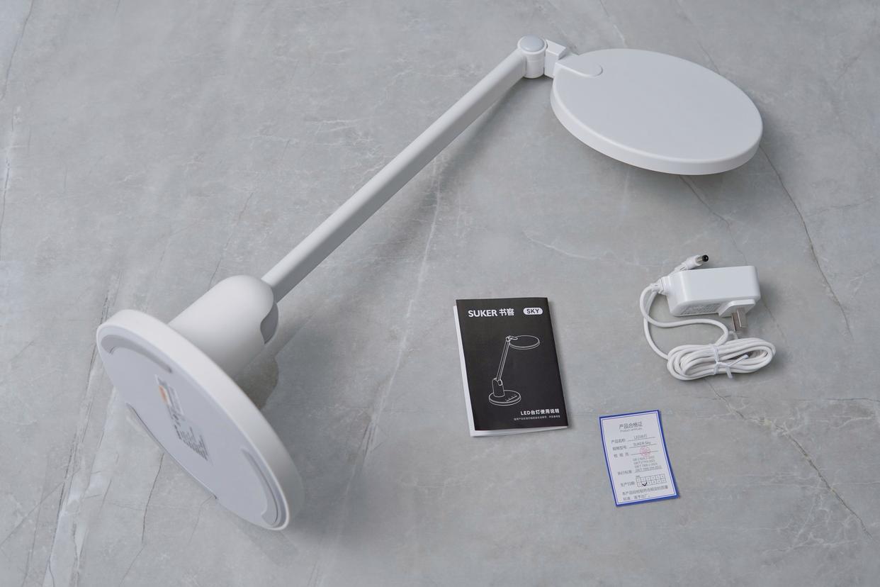 ▲书客SKY护眼台灯的套装还挺简单的,除了台灯本体外,就是电源适配器、说明书和保修卡了。