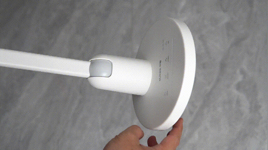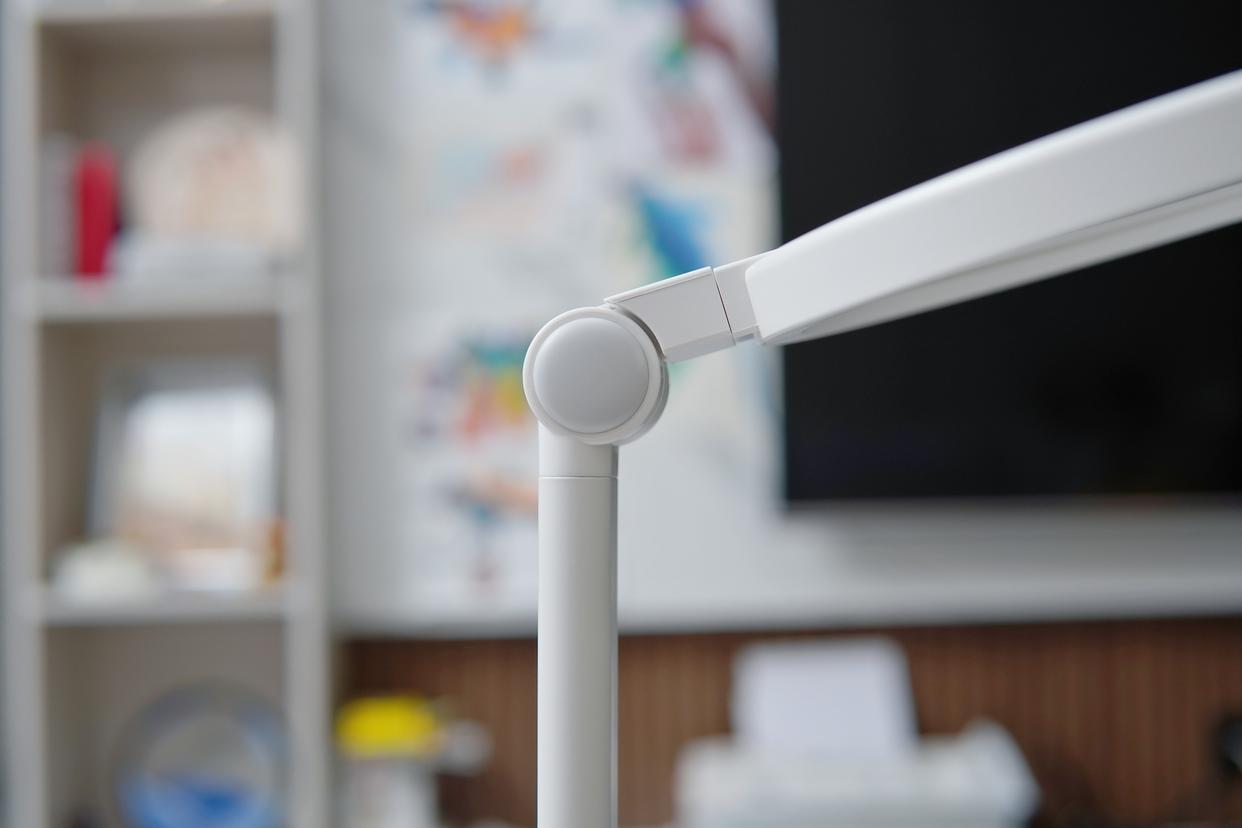 ▲书客SKY护眼台灯的基座和灯杆之间的转轴,可以实现90°转动,用于桌面照射不同高度和左右幅度的调节。