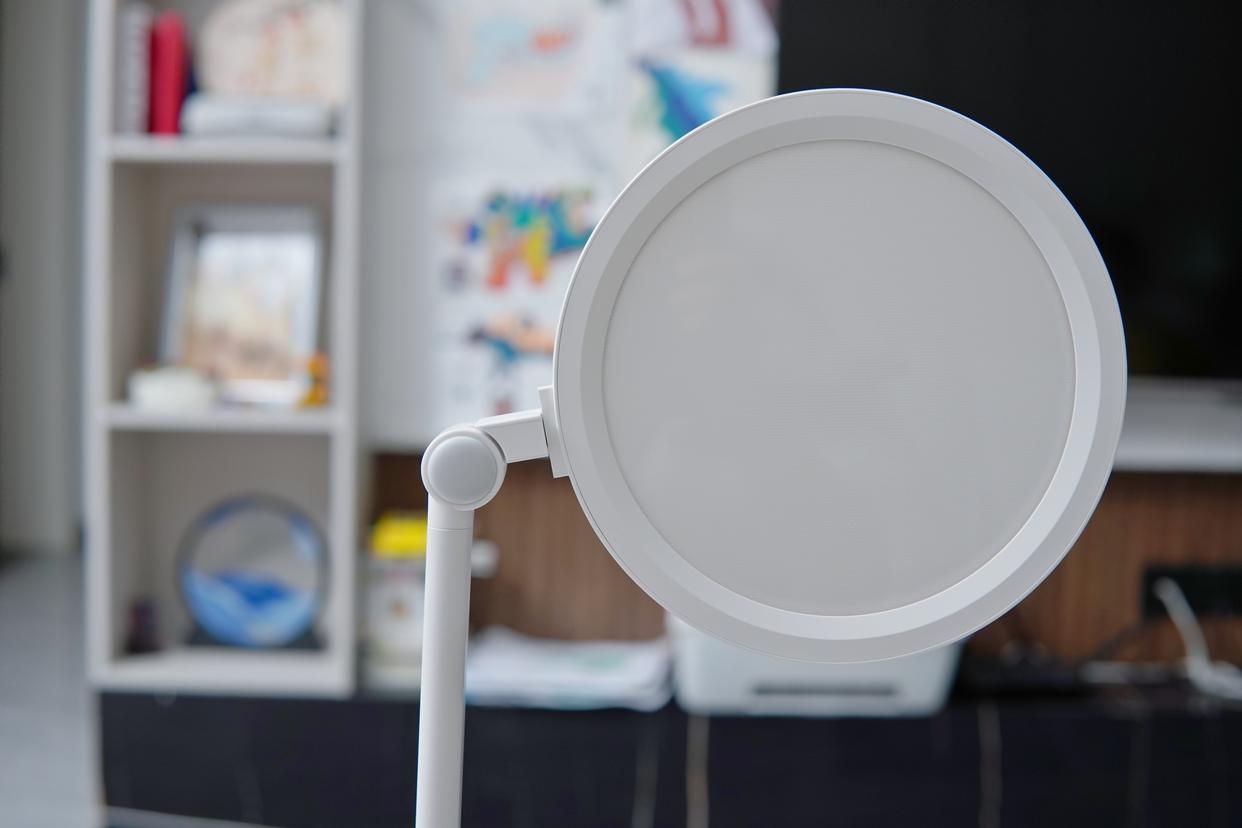 ▲这个地方的调节,我个人觉得有个很实用的地方在于,当你使用台灯觉得余光会照到眼睛时,你可以把照射面往里转一下,就不会晃眼睛了。