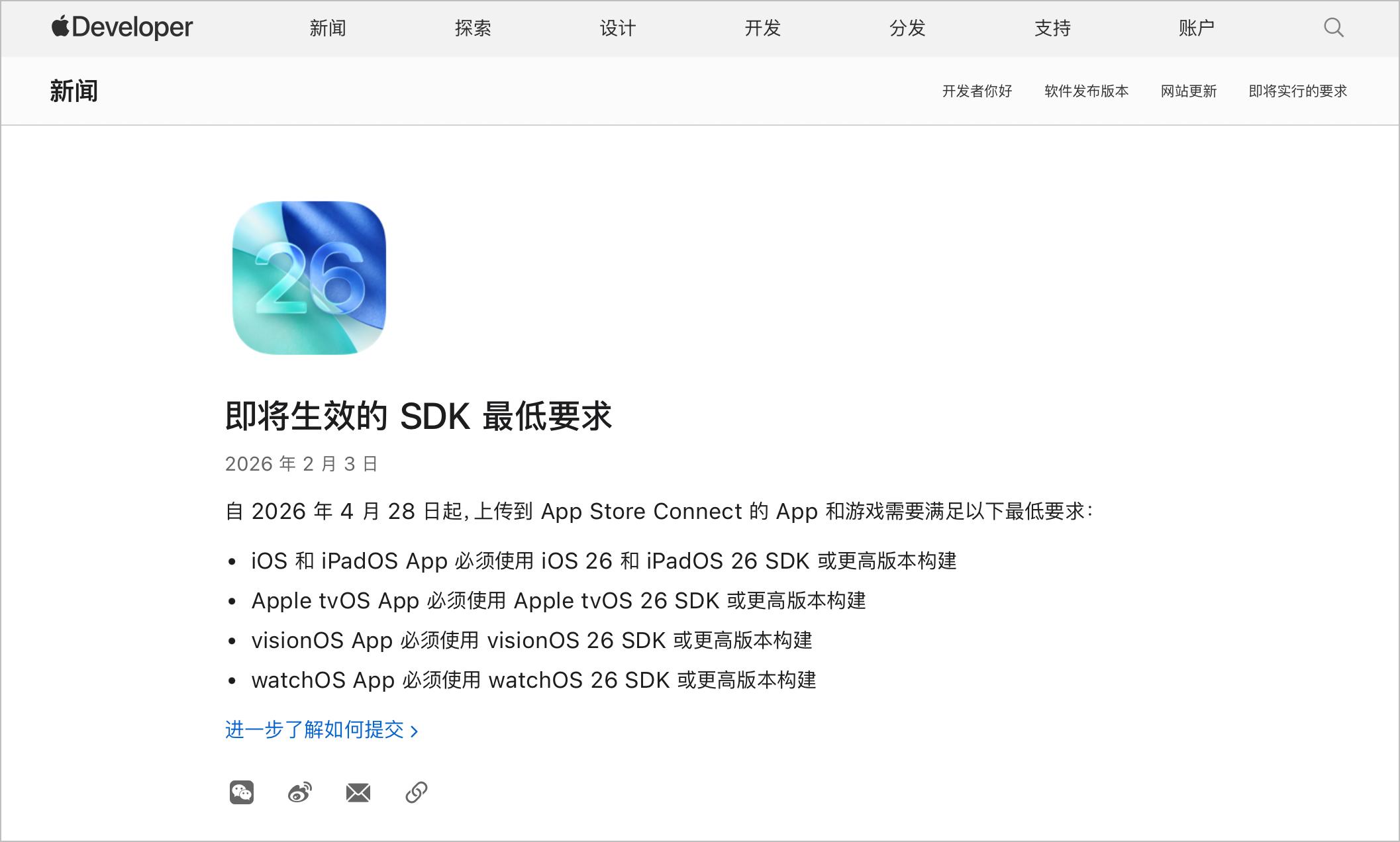 这里有一个很多用户容易误会的点:提高 SDK 构建要求,并不等于强制应用必须运行在 iOS 26 上。