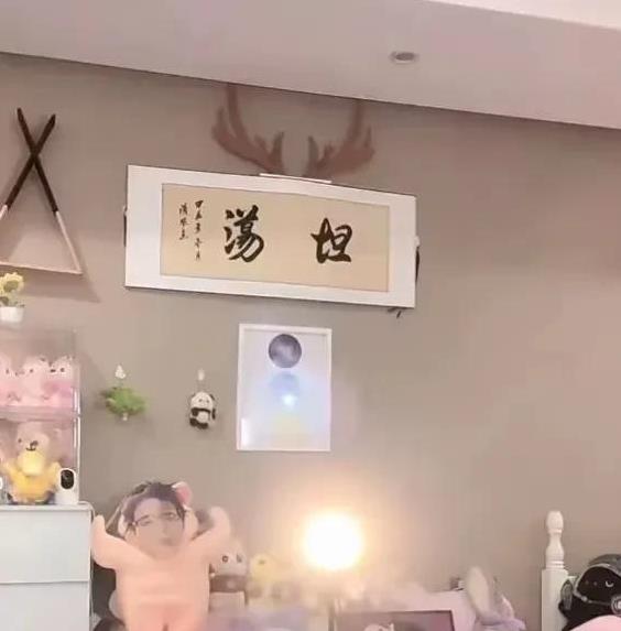 直播间里都是粉色系列,身后的那两个字很出圈。