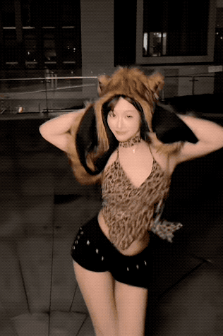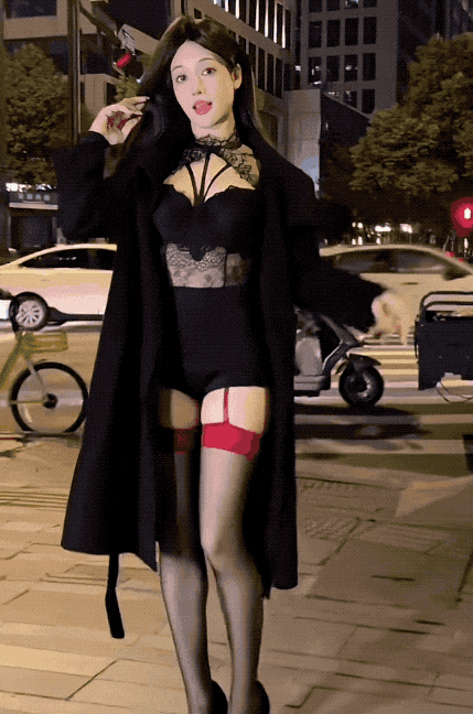 估计怕白天朝阳大妈来找家长,她都是夜大半夜地出来骚发弄姿。这身虎皮装,更是露出大长腿,小蛮腰。