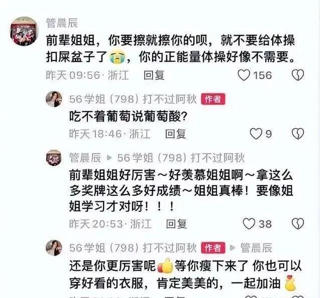 因为有这样一个师姐,有国家队的师妹看不惯了,就在评论区与其争论了起来。
