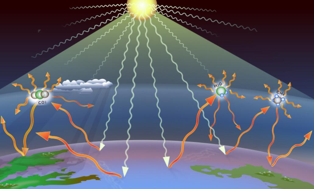 (注:太阳的短波辐射会让地球表面的温度升高,在此之后,地球表面的热量又会通过长波辐射“反射”回太空,在这个过程中,地球大气层中的温室气体会吸收一部分长波辐射,进而使地球表面与大气层的温度增高,这就被称为温室效应)