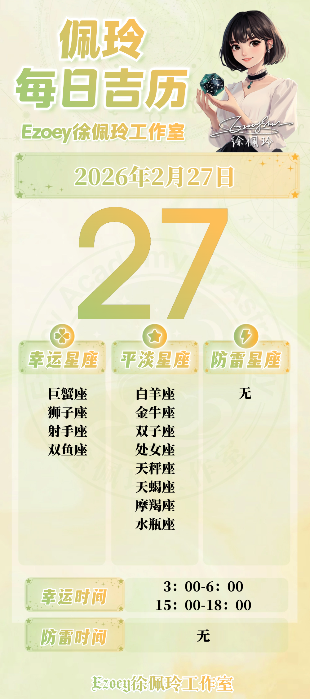【2.27日播报】强力助力日 幸运星座:巨蟹座、狮子座、射手座、双鱼座——Ezoey徐佩玲26年星座播报