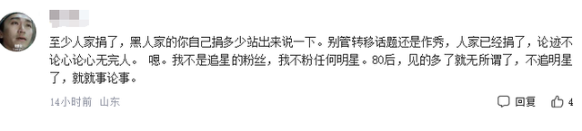 当然,也有人会说:明星赚那么多,捐点钱不是应该的吗?但钱也是人家自己凭本事挣的,捐多少、怎么捐,说到底都是个人选择,也没必要站在道德上指责别人。