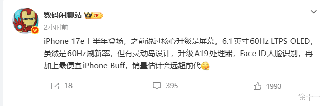 根据站哥爆料,iPhone 17e预计在上半年(最快 3 月份就要跟大伙儿见面了。