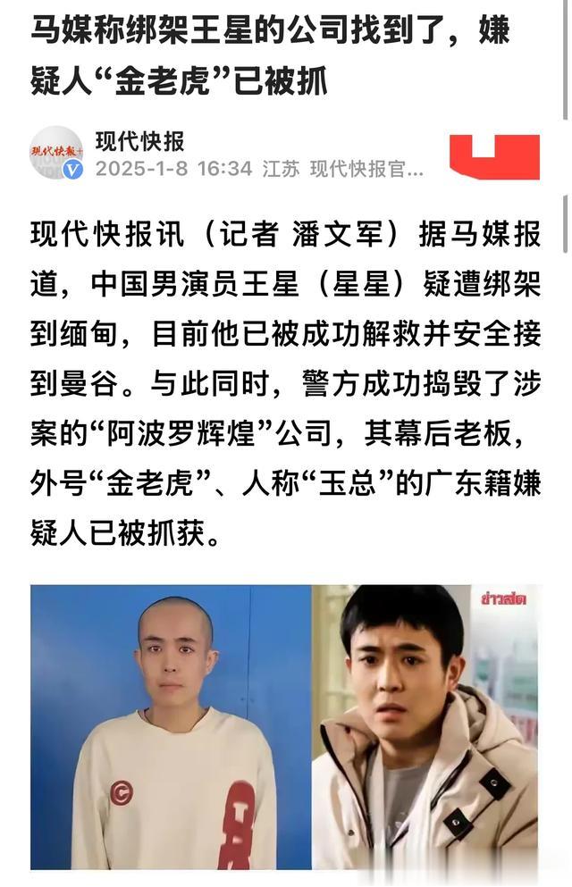 中国男演员王星疑遭缅甸绑架,已被解救到曼谷。警方捣毁涉案公司,抓获老板“玉总”和绑匪金灿……