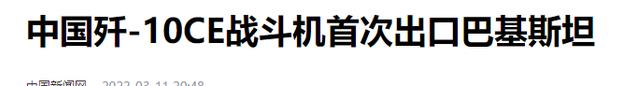 中国新闻网:中国歼-10CE战斗机首次出口巴基斯坦 2022-03-11