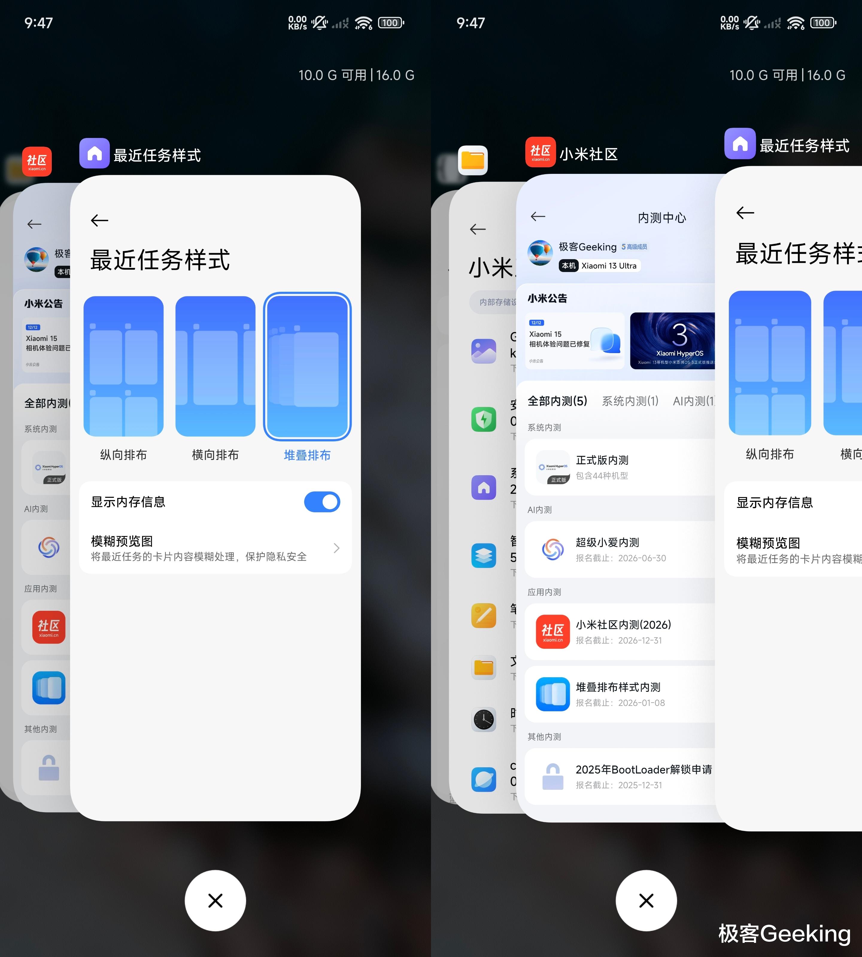 此外,关于小米手机非常值得关注的还有悄悄推出的「堆叠任务后台」全新功能,现已迎来第 4 版升级,只需要装上「堆叠后台桌面」测试版 App 就能立即体验!