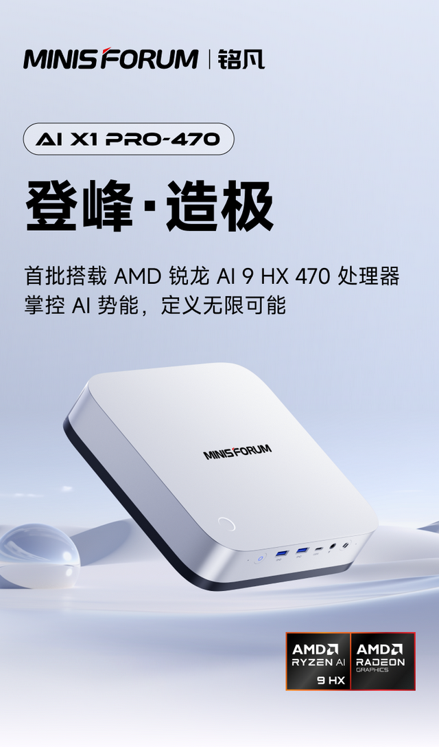 近日,铭凡AI X1 Pro-470正式发布,并首批搭载AMD锐龙AI 9 HX 470处理器,在本地AI能力、持续性能释放以及平台扩展性方面实现全面升级,进一步拉高了高性能Mini PC的上限。AI 应用正在发生一个明显变化,从“跑在云端”,逐步走向“跑在本地”,无论是大模型推理、AI 绘图,还是开发、创作场景,对本地算力的要求都在快速提升。