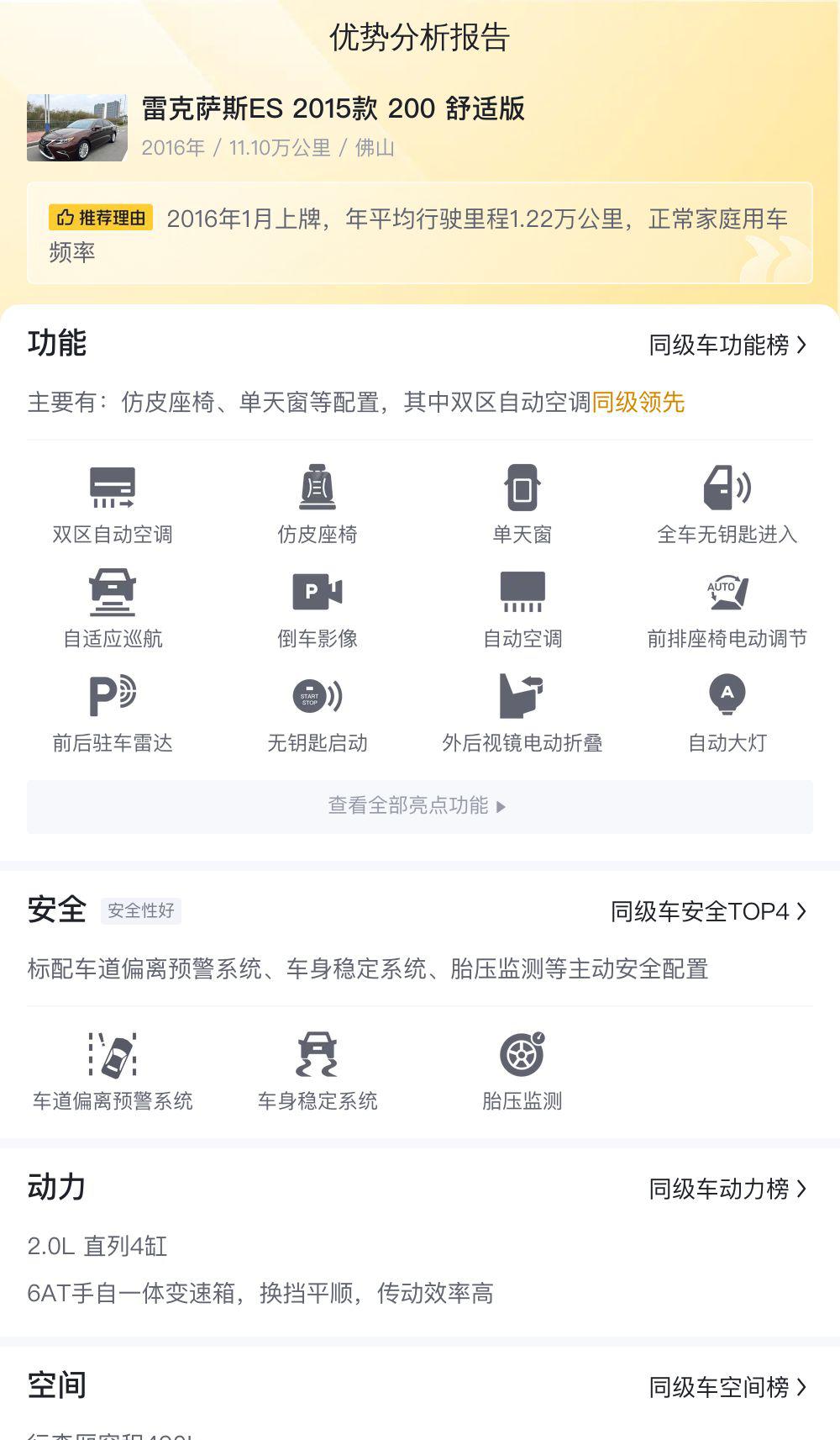 通过以上数据对比,我们可以更清晰地了解这辆二手ES200的市场定位和性价比。 最终的购车决策,还是需要根据个人的实际需求和预算来决定。