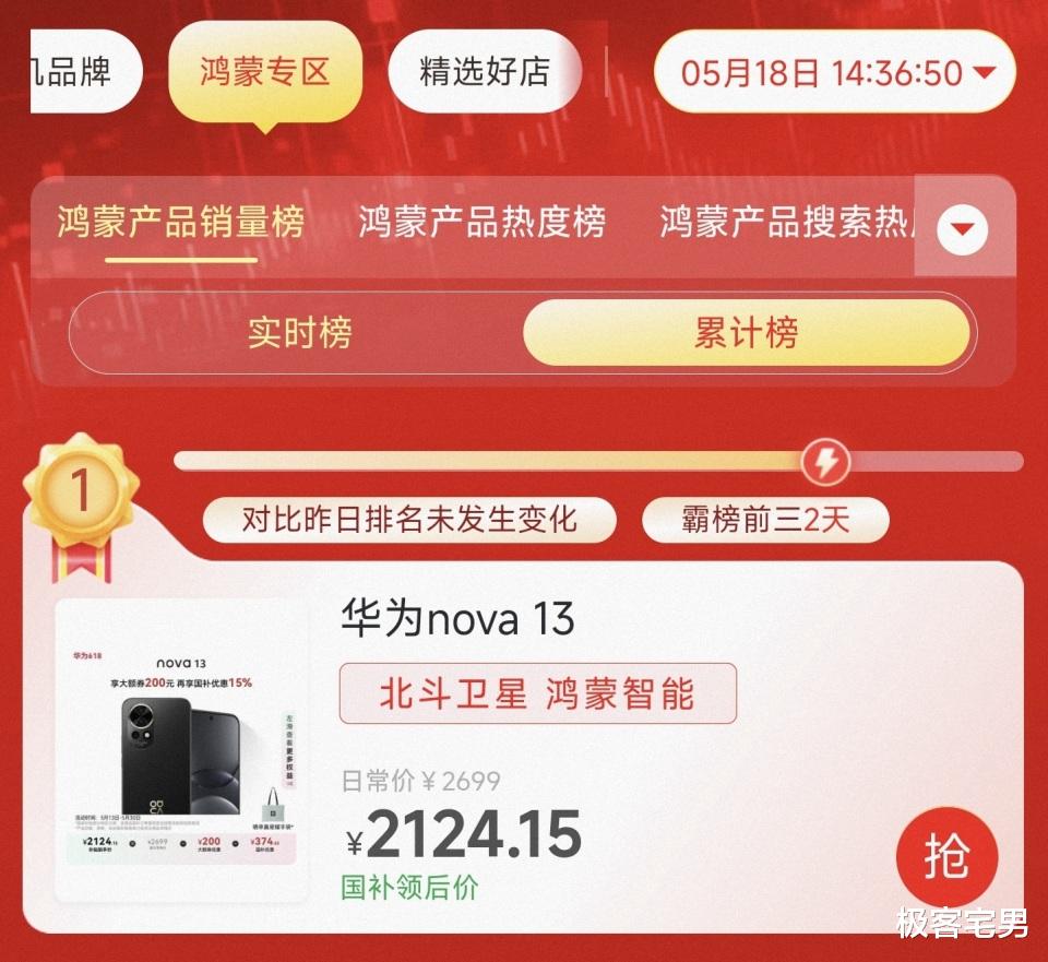 在一年当中最值得换手机的节点之一,无疑就是618。无论你是“等等党”还是“刚需族”,这个时间点往往都能碰上一波大促。不光是手机厂商给力让价,平台也会撒出不少红包补贴,对于普通消费者来说,只要挑对了型号,确实可以省下一笔不小的开支。但问题也随之而来:选择太多,反而不知道该买哪个。而如果你本身就是偏爱华为品牌的用户,那目前冲上618热销榜第一的华为nova13,可能就值得一看了。