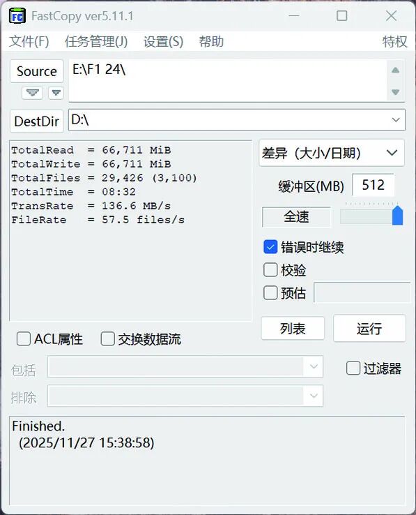 ▲希捷银河Exos M 30TB硬盘在传输F1 24游戏文件夹时的表现