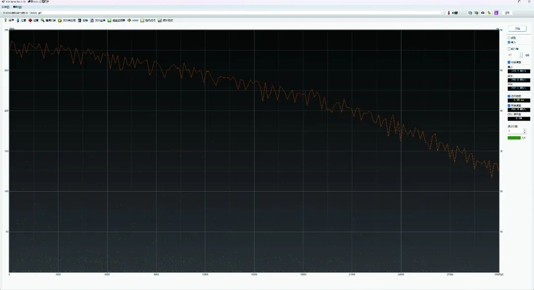 测试过程中监控曲线平稳,说明硬盘在全盘连续读写与随机访问混合的复合工作负载下,性能输出较为一致,没有出现大幅波动。对于一款旨在承载海量企业数据与冷热存储任务的硬盘来说,这样的稳定性和综合性能表现,能够较好地满足长时间、多任务并发的使用需求,在容量与效能之间取得了实用化的平衡。