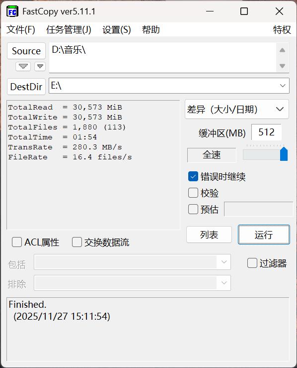 ▲希捷银河Exos M 30TB硬盘在传输内含1880首音乐、容量29.86GB的音乐文件夹时的表现