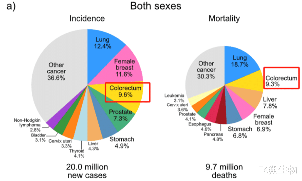 结直肠癌(CRC)是全球发病率第三的恶性肿瘤,也是癌症死亡的第二大原因。据估计[1],2022年将发生190多万结直肠癌(包括肛门癌)新病例和90.4万例死亡,占癌症病例和死亡人数的近十分之一。结直肠癌在发病率方面排名第三,但在死亡率方面排名第二。